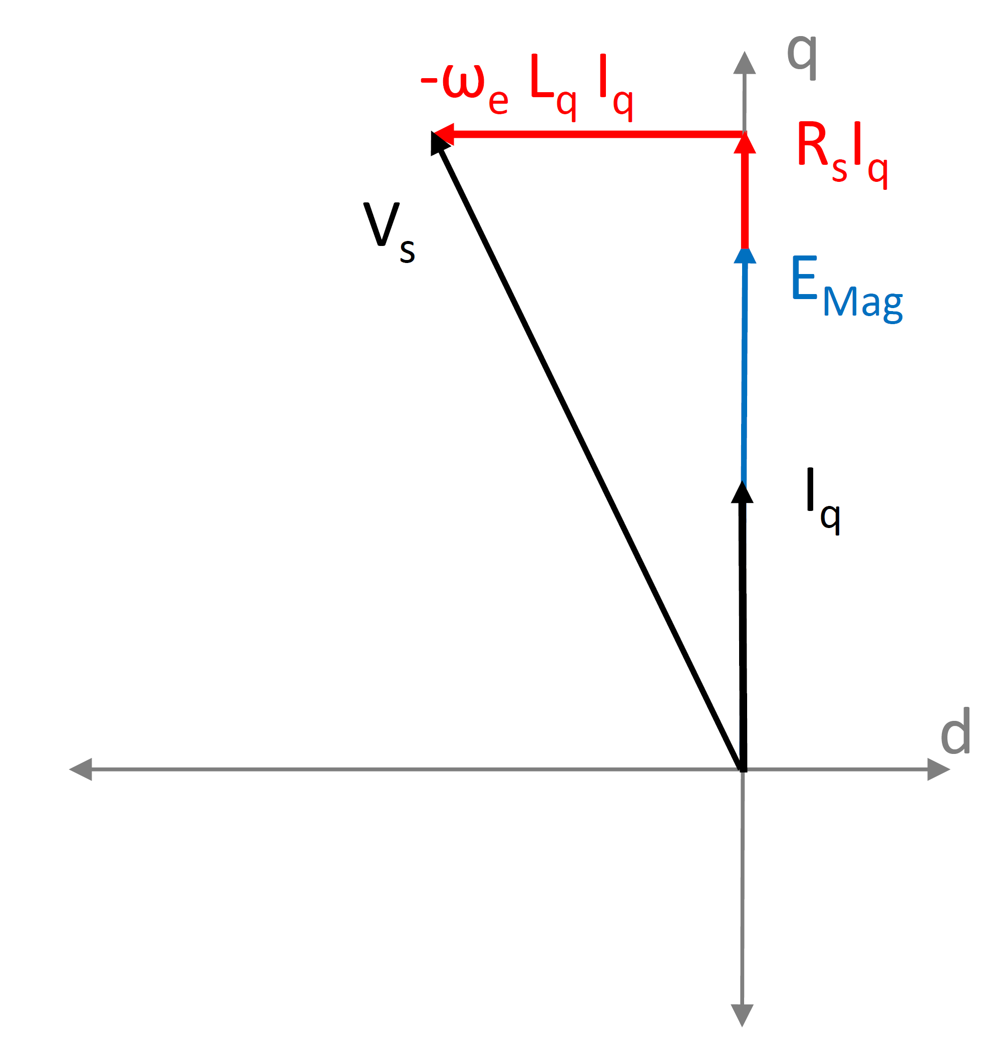 Figure 5.79 PMSM vector diagram: \(I_{d} = 0\)¶