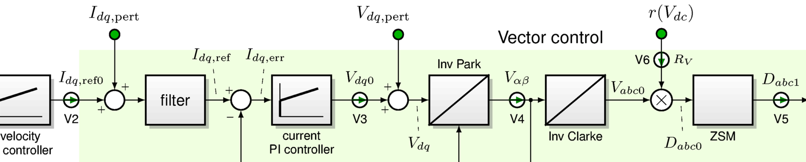 In addition, we need to make the output limits of the current controller scale proportionally to \(V_{dc}\), in order to reflect the physical limits of the three-phase bridge.